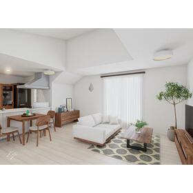 LDKは南向きの3面採光で、天井が高く天窓から光が降り注ぐ明るい空間。風通しも良く、家族が自然と集まる居心地のよいリビングです。