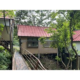 別荘管理地「ニューパークひるが野」内の別荘です。こじんまりとした建物ですが、目の前に川が流れており、涼しいです。