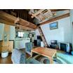 リビングの様子。机の下に掘りごたつが切ってある。囲炉裏のある暮らしが堪能できそうだ。