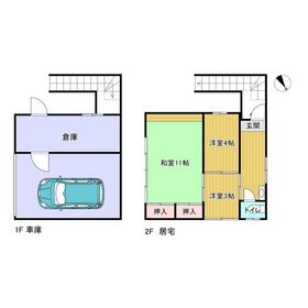 ・平屋の西側半分と2階建車庫は土砂災害警戒区域(急傾斜)に指定されています。
