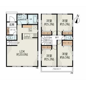 4LDK(洋 6.5・5.2・5.2・5.2 LDK 20) |