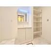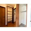 キッチンにストック食品や調理器具の収納に便利な物入があります。使いたい時にすぐに取り出せ、家事動線がスムーズになります。調理スペースをすっきり広々使えます。
