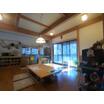 高久丙エリア(別荘地外)からご紹介は平成9年築の物件です。日本家屋を彷彿とさせる室内は、天井高も十分にあり、立派な梁がお部屋に立体感を与えてくれそうな雰囲気でした。薪ストーブ付、敷地沿いに小川有。