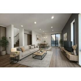 【AI施工例】ご家族みんながゆったり寛げる開放感たっぷりのリビング。広々としたリビングでは家具選びも楽しみの一つになりますね。※本画像は実際の写真にCG加工しております。家具は付属しておりません。
