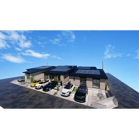 全居室収納、ウォークインクローゼット、太陽光発電システム、シューズインクローゼット、クローゼット、床下収納、カードキー、電動シャッター、防犯用ガラス、全居室フローリング、室内物干し、上水道、下水道、都市ガス、側溝、複層ガラス、Low-E ガラス |