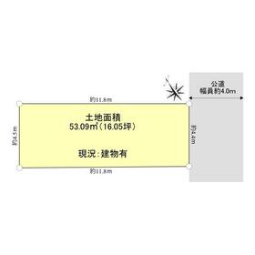□前面道路:公道(南東側)、幅員:約4.0m、間口:約4.4m