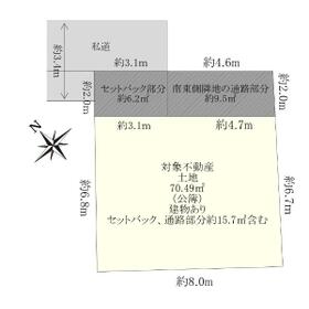■土地面積:70.49㎡(セットバック、通路部分約15.7㎡含む)