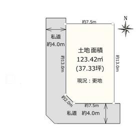 接道状況 南 4.0m 私道 位置指定有 接面7.5m ・ 西 4.0m 私道 位置指定有 接面13.0m ・ 二方道路 地目 宅地