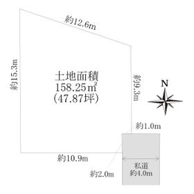 ・土地面積(公簿):158.25㎡(47.87坪)、別途私道負担22.13㎡あり
