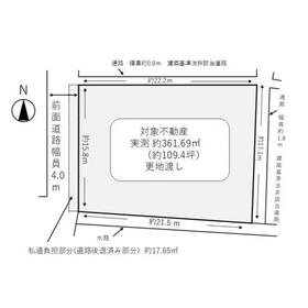 約109.4坪の建築条件無し土地です。北側が通路、南側が水路につき、陽当たり・通風ともに良好です。解体・更地にてお引渡し致します。 |