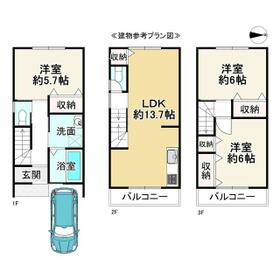 ※建物参考プラン価格:1,570万円(税込) 建延面積:77.4㎡(1F:23.94㎡ 2F:27.54㎡ 3F:25.92㎡)/別途外構費用:50万円、建築確認申請費用:50万円、水道負担金:50万円別途要す(税込)/小型車駐車スペース有り/土地先行決済
