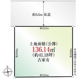 北側約5.5m私道●建築基準法第22条指定区域、宅地造成等工事規制区域、景観計画区域:一般地域、日影規制3h-2h/1.5m●現況古家概要【種類】居宅【建物構造】木造スレート葺2階建【床面積】1階40.44平米、2階37.96平米【建築年月】1975年4月●車両は販売価格に含まれません