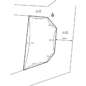 接道状況 北 6.0m 公道 接面11.5m ・ 東 6.0m 公道 接面8.8m ・ 南 6.0m 公道 接面12.8m ・ 三方道路 地目 宅地