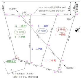 私道面積はセットバック部分を3軒で按分した面積です。