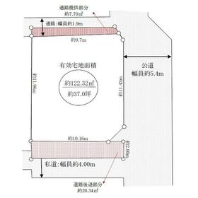 接道状況 東 5.4m 公道 接面11.4m ・ 南 4.0m 私道 接面10.1m ・ 二方道路 地目 宅地