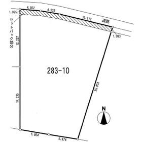 283番16 24.34平米 (セットバック分) 上物有23.18平米 (平家) 法34条12号の区域