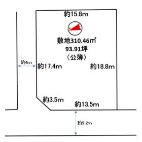接道状況 北 4.0m 公道 接面17.4m ・ 西 5.2m 公道 接面13.5m ・ 二方道路 地目 宅地