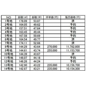 〇全14区画分譲地です!(表示の金額・面積は8号地) 残り4区画 |