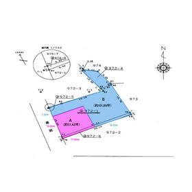 AB2区画のうち北側の区画で103坪の広さです。住宅建築部分はほぼ正方形の地形。余地部分はカーポート、家庭菜園等お好みのプランを描いてください。
