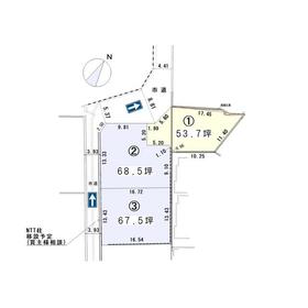 区画①の価格です。土地形状、接道状況を加味した価格設定と致しました。燕南小学校まで約350m、燕三条駅まで約1800m