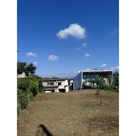 傾斜地の後ろは平らで広々、菜園やガーデニングに最適、眺望が開けゆとりの生活を