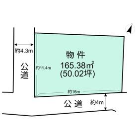 接道状況 南 4.0m 公道 接面16.0m ・ 西 4.3m 公道 接面11.4m ・ 二方道路 地目 宅地