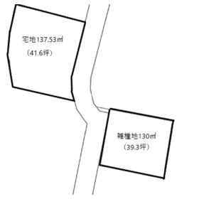 宅地の他に130㎡の雑種地(飛地)を含みます。雑種地は宅地と接しておりません。
