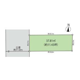 区画図の面積は、現況測量図に記載の面積です。公簿面積は36.66平米。確定測量相談可。