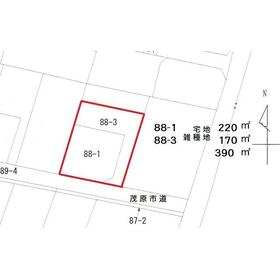 水道 引込み済み。都市ガス 引込みなし 前面道路配管有。88-1宅地、88-3雑種地。